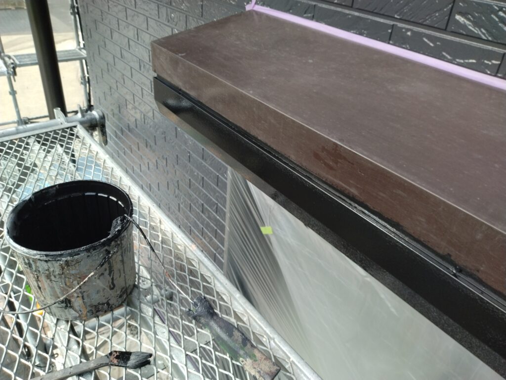 続いて中塗り作業です。お客様と相談して少し濃い色へ変更して中塗り作業を行っていきます。10月になると朝夜には結露するため、作業前には乾燥しているか確認が必須になります。