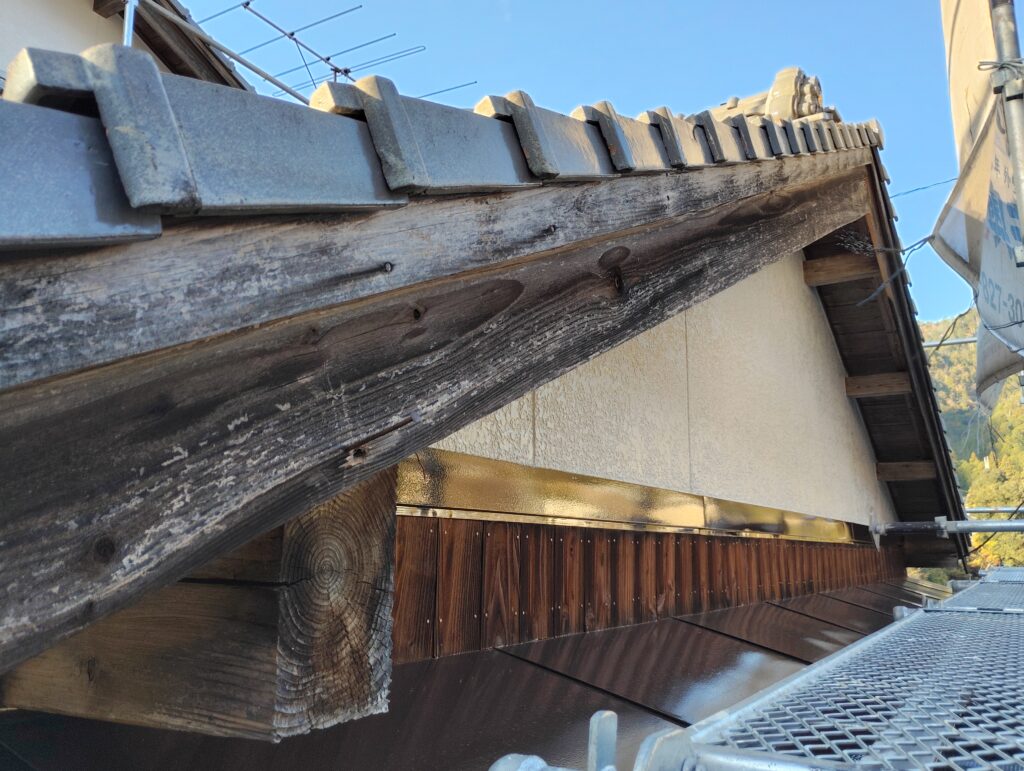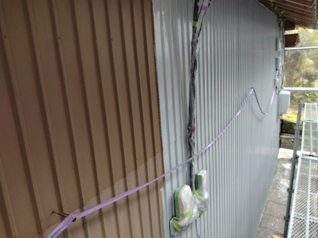 腐食部は木目調ガルバリウム鋼板に取替え板張りのしっかりしているところは木部用塗料で仕上げました。