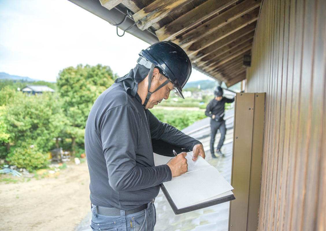 まずは屋根をプロの塗装技術者が調査診断いたします。直接屋根の上に登って、しっかりと屋根の状態を確認いたします。